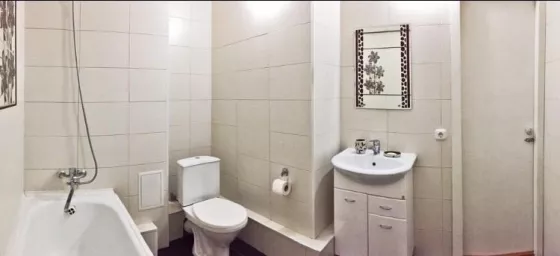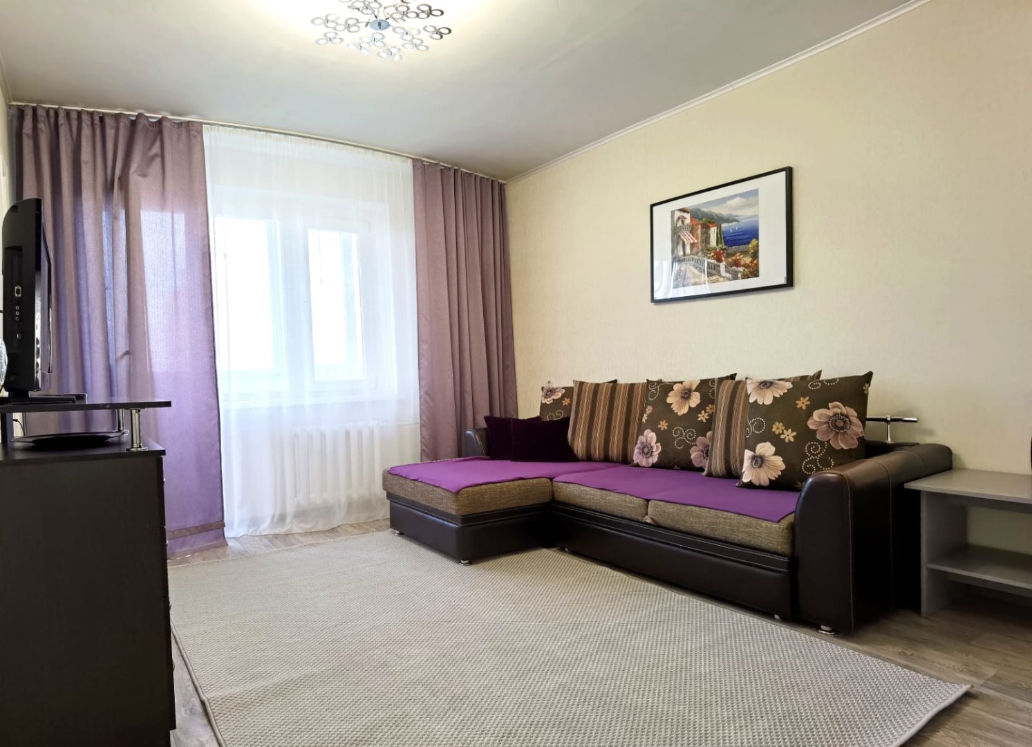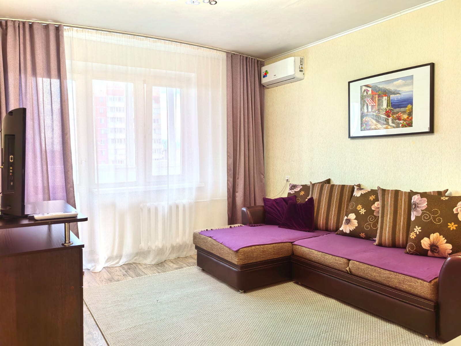 Квартира в хорошем состоянии, имеется все необходимое: вся мебель, кондиционер, водонагреватель, холодильник, плита, стиральная машинка/авт, тв, микроволновка. В шаговой доступности школы, магазины, детские сады. Комиссия агентству по факту заселения.